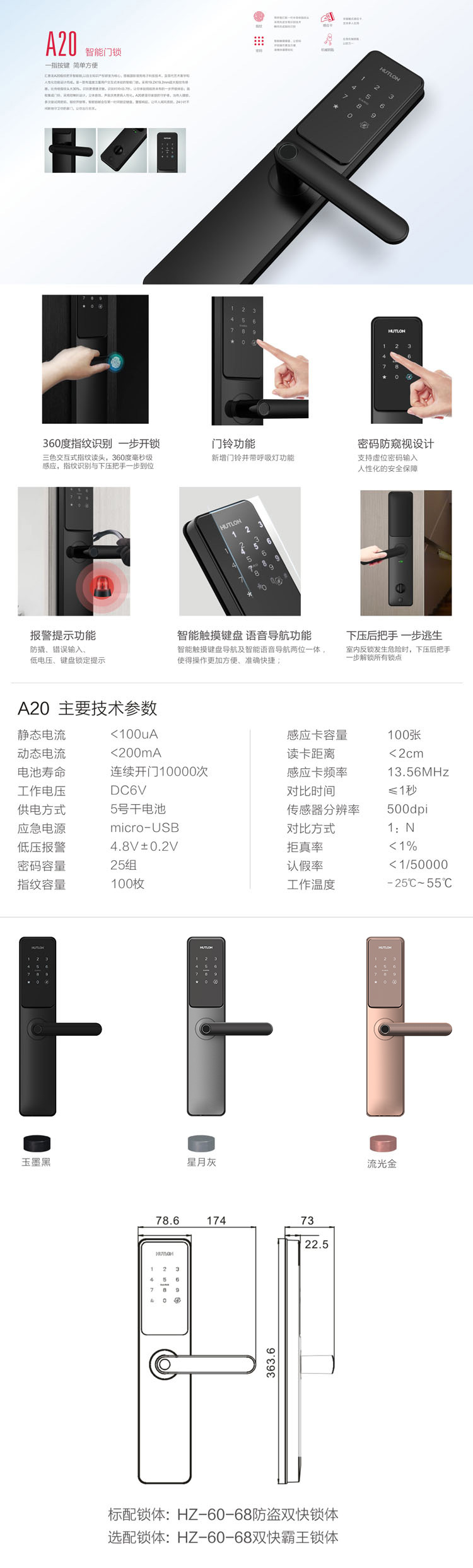 智能锁材质:锌合金、SUS不锈钢、防火ABS材料、铁板等
